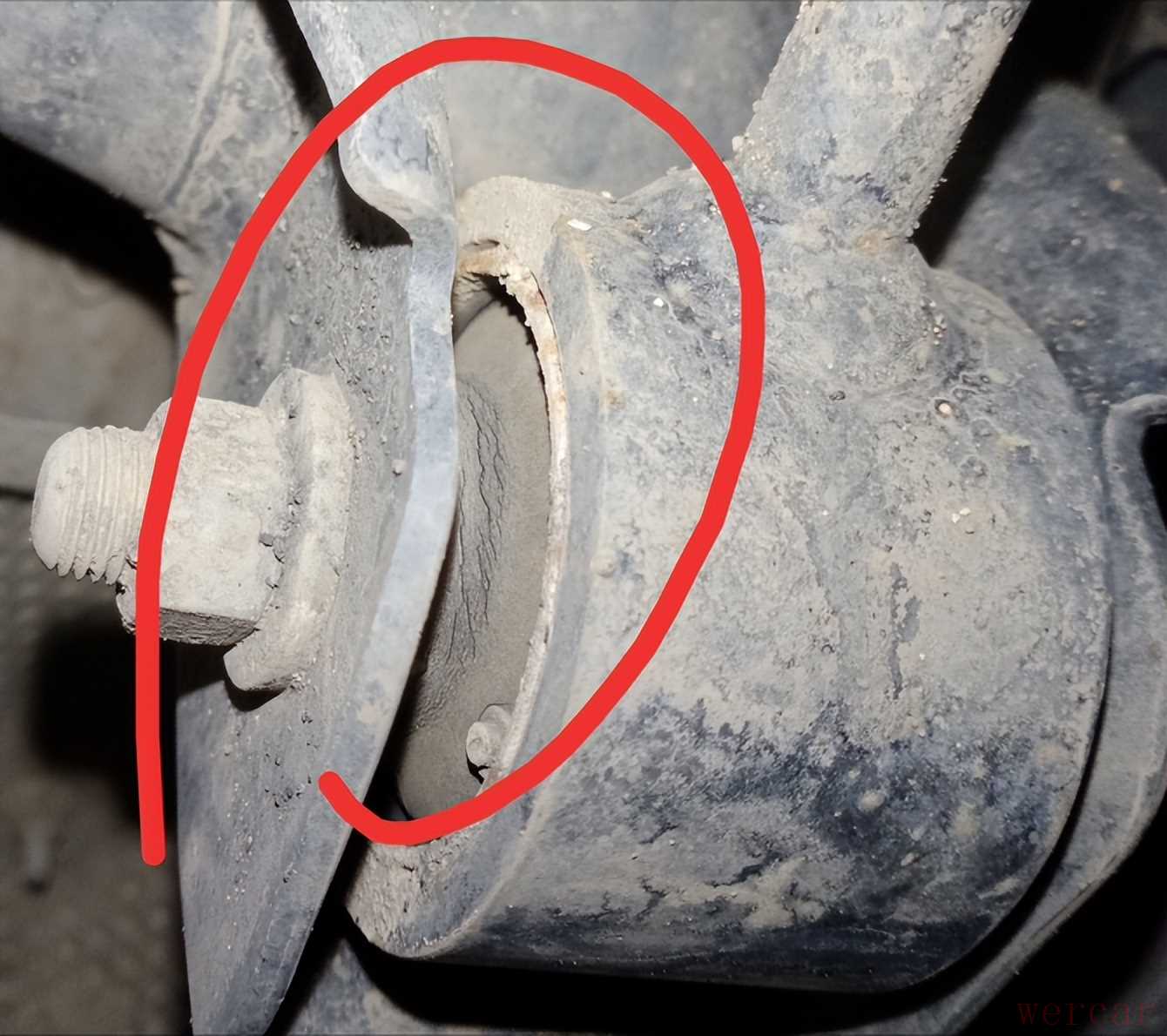 另一根下摆臂胶套直接炸裂了,一条很明显的大裂缝。
