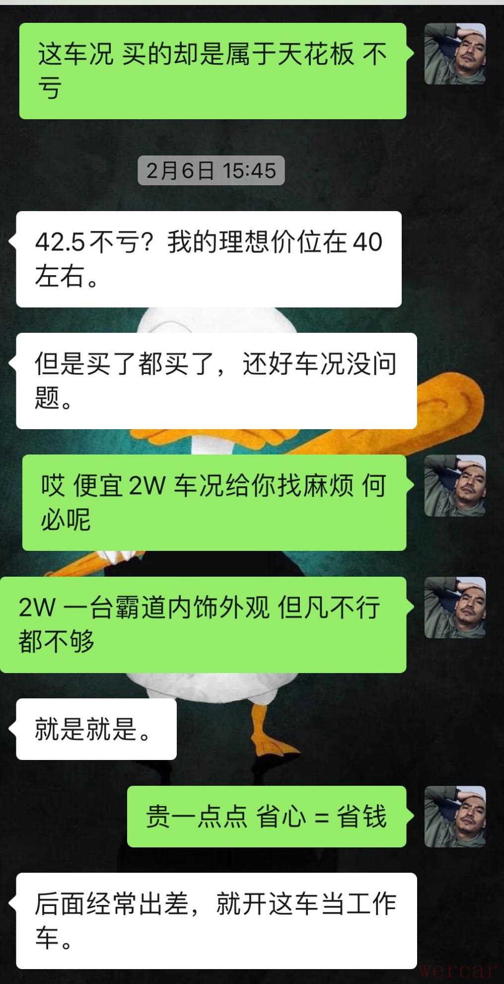 车主老板接车后,我俩关于这车又聊了聊,这段聊天记录,大家其实可以做个借鉴,理智的考虑霸道LC150的配置问题,这个话题之前的案例里面我也说过。