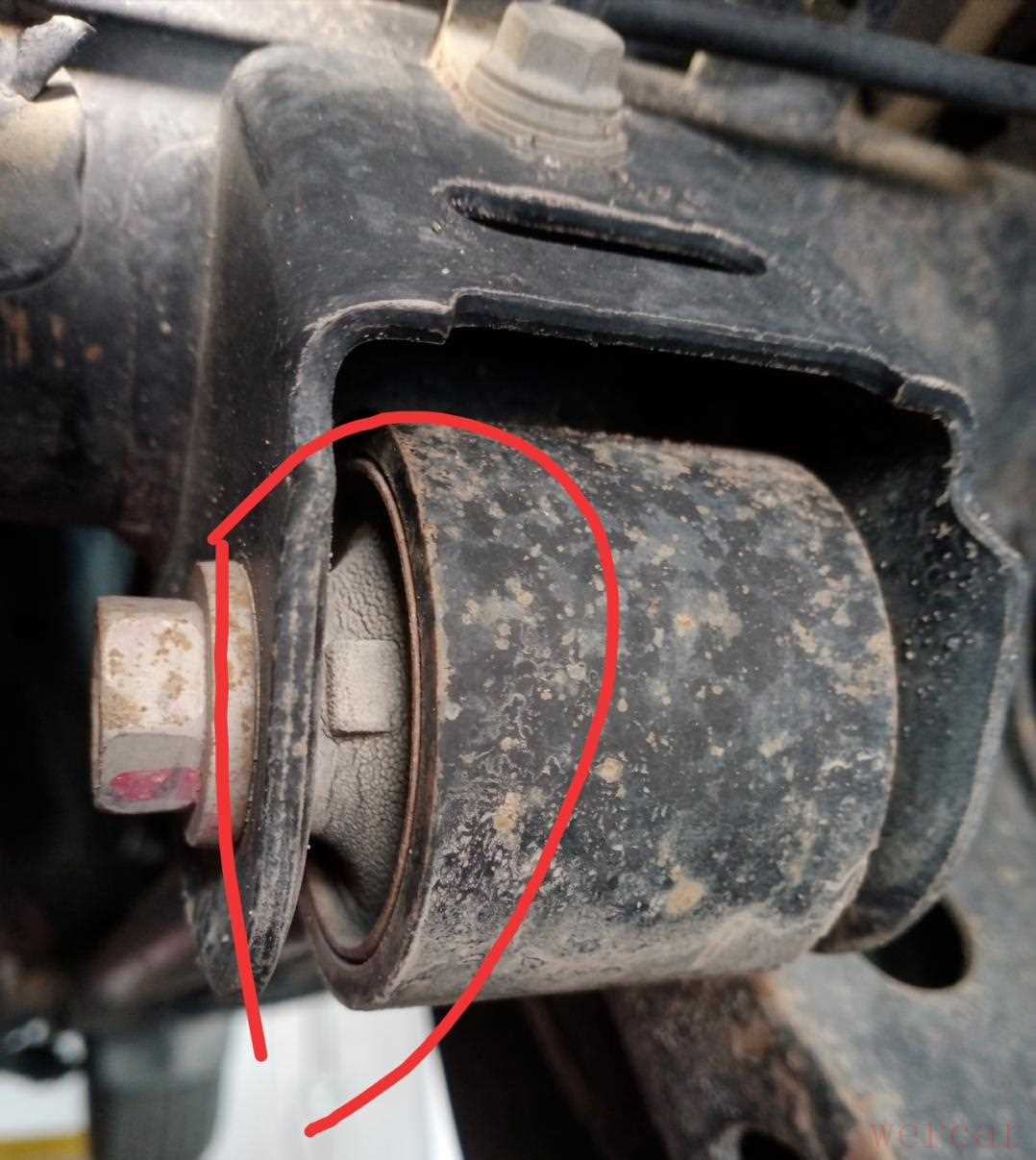 纵臂胶套老化,收缩严重,基本没啥缓冲效能了。