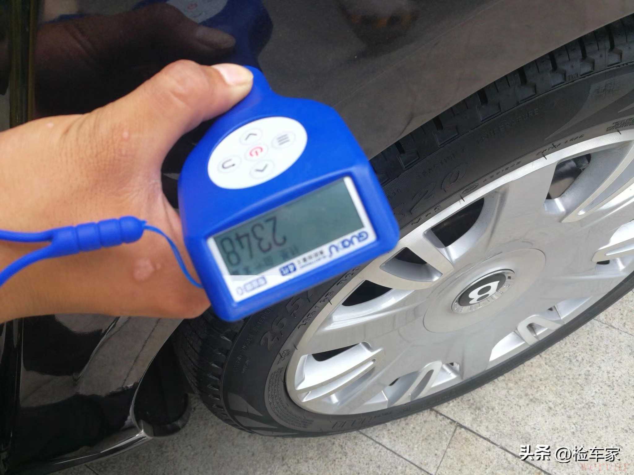 不过顺带发现了左后叶子板有过钣金喷漆,漆面厚度都飙到了2348μm,腻子真厚啊!其它地方都还好,跟ABC柱一样都是300多μm。