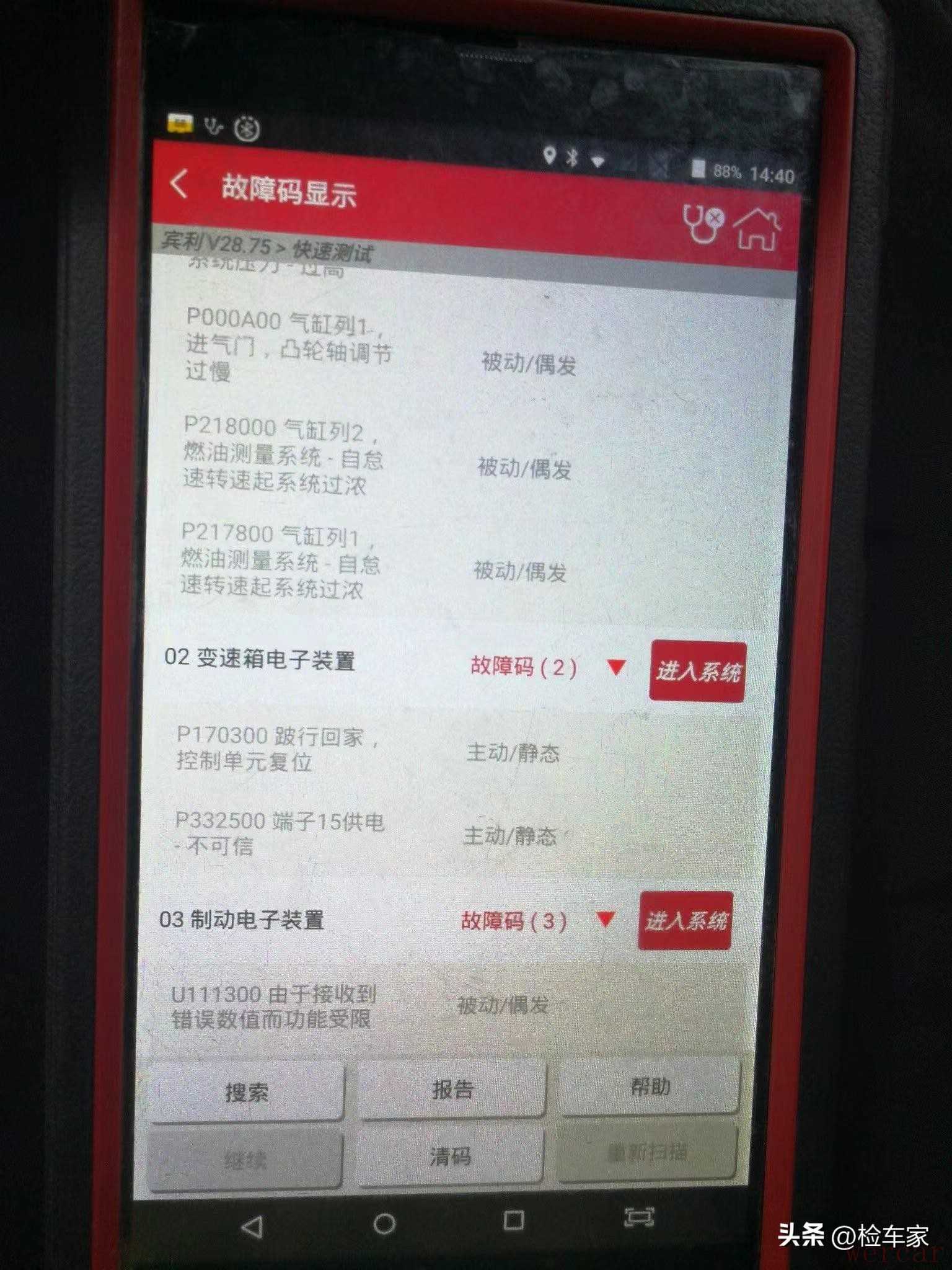 最后检测车辆的电控系统,电脑读出来多个故障码,多数是偶发性质的,没什么影响,清除掉就行!变速箱应该有一个传感信号出现了故障,跋行模式暂时是用不了,不过不用也罢,这种车坏了是直接上拖车的!