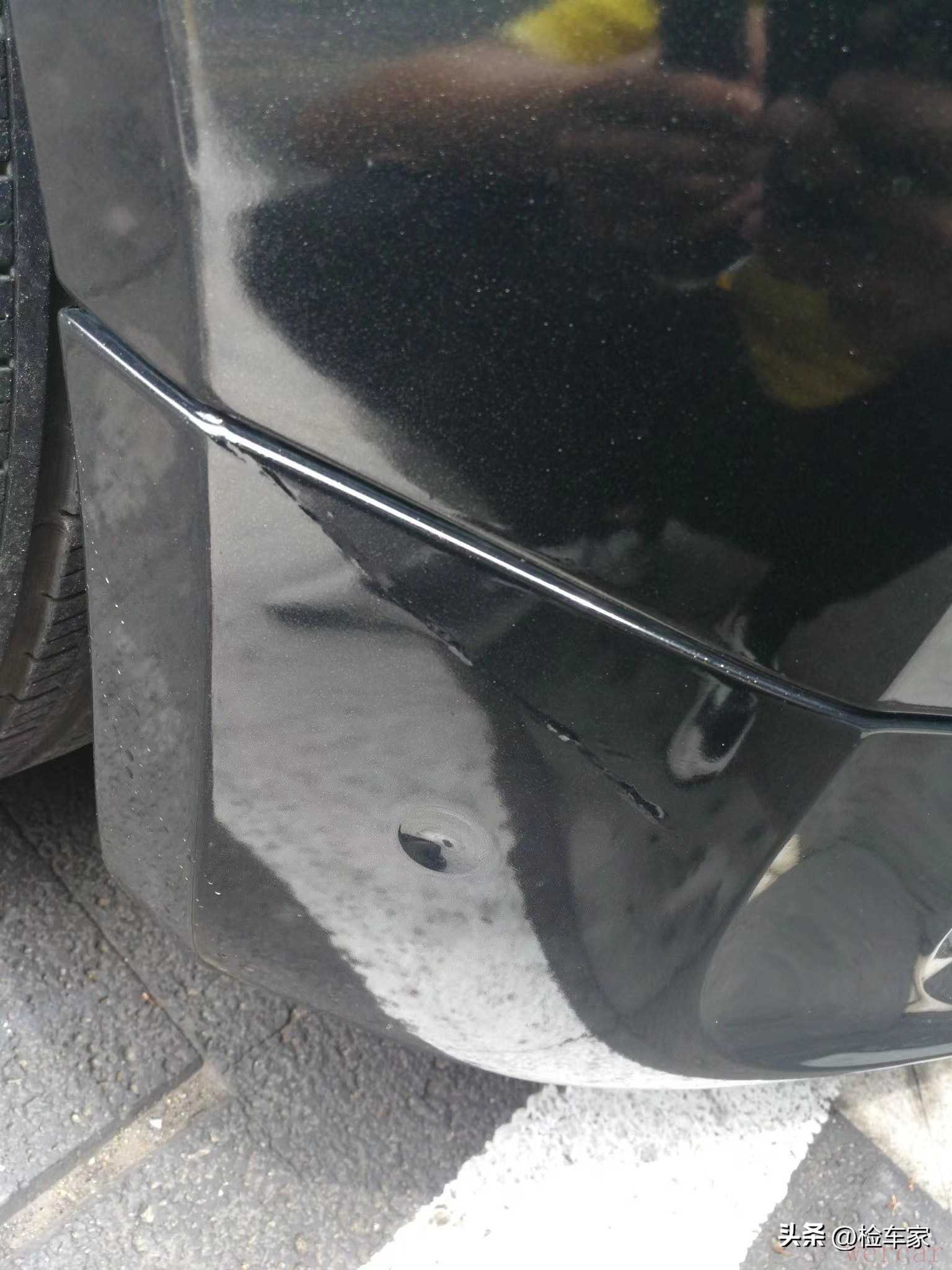 单看外观的成色还是挺不错的,可能是贴了透明车衣的效果!巡视到前保险杠位置的时候,发现车衣破了一个小口,虽然不影响大局,但也是要汇报给客户余老板的,毕竟这种级别的车,一个小瑕疵都会影响几万块的差价!