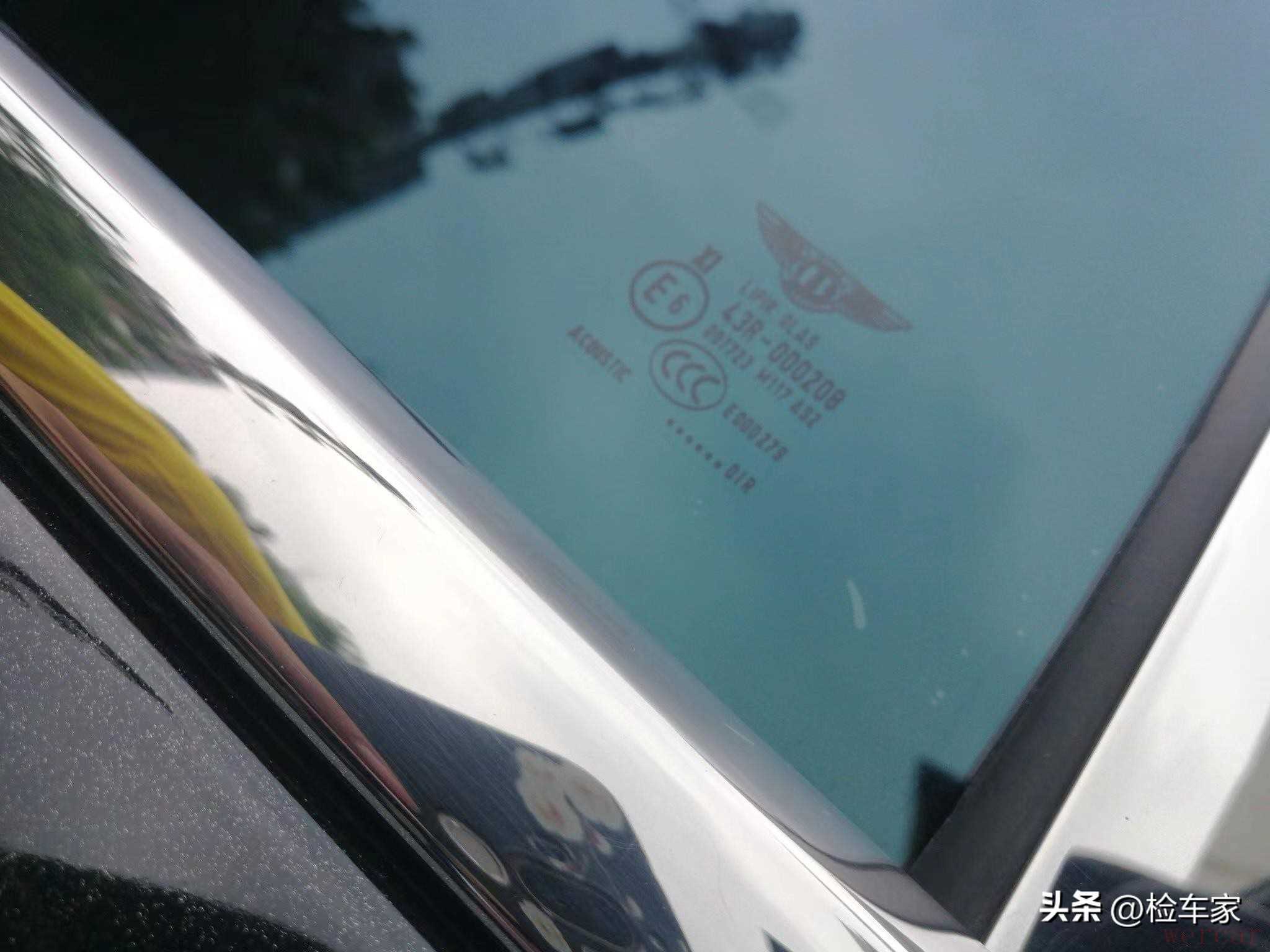 全车玻璃的制造日期及编号都是一样的,而且没有拆装后打胶的痕迹,可以肯定全车玻璃都是原厂配件!由此也可以判断全车没有特别严重的撞击事故,不然玻璃不会完好无伤!
