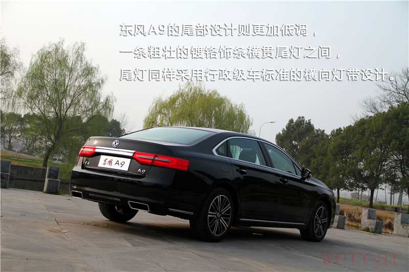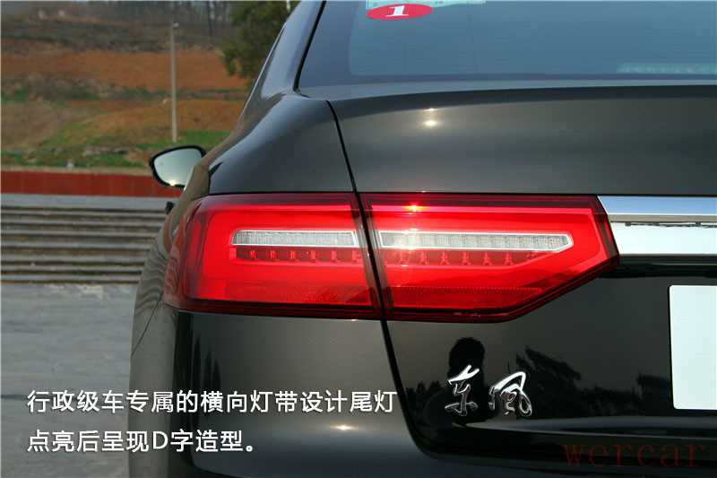 与前脸相比,东风A9的尾部设计则更加低调,一条粗壮的镀铬饰条横贯尾灯之间,尾灯同样采用行政级车标准的横向灯带设计,以稳重为主。