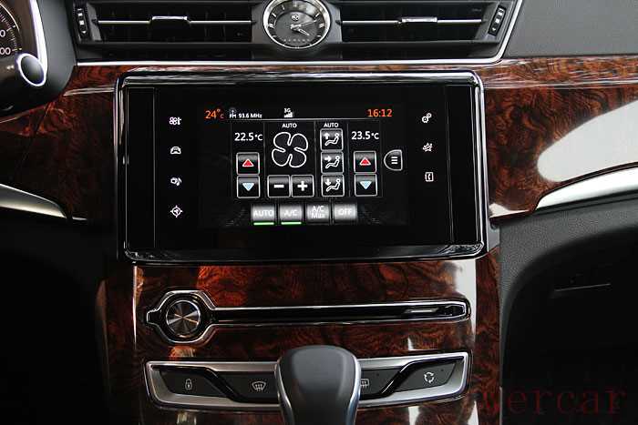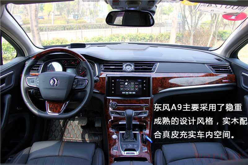 内饰设计中,东风A9主要采用了稳重成熟的设计风格,实木配合真皮充实车内空间,据官方简绍,A9的车内空间多采用豪华品牌偏爱的NAPA真皮,其中控台主要由大尺寸触摸显示屏与极少的物理按键组成。