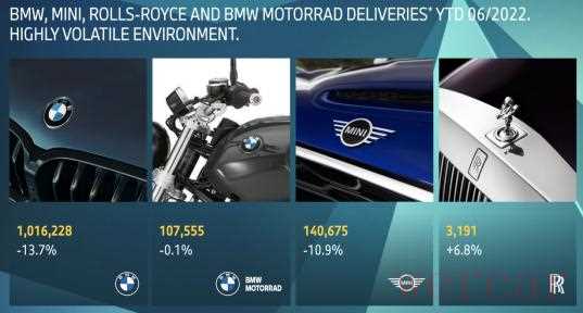 2022年前6个月,宝马集团累计全球共销售116万辆,其中不含M系的宝马品牌乘用车销量为101.7万辆(其中中国市场37.87万辆)、Mini品牌累计销量为14万辆、超豪华品牌的劳斯莱斯销量则为3191辆、宝马品牌摩托车销量达107.6万台。