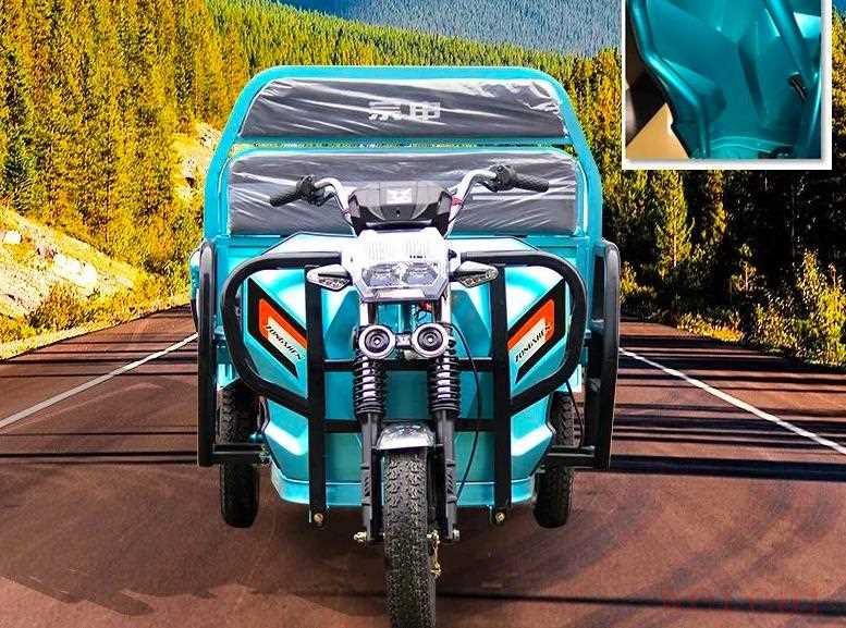 该车定位的是果园货运三轮电动车,外观敦实厚重,最显眼的是4块高透亮发光模板组成方形LED前照灯,转向灯使用的是低功耗8灯珠国标LED转向灯,亮度高。驾驶位配置了宽大脚踏板,标配翻转靠背舒适性好。