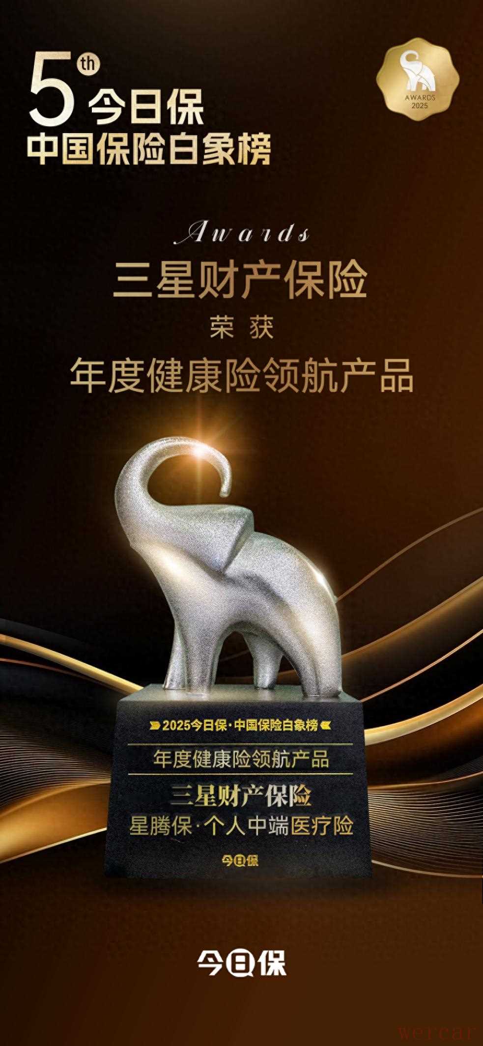 这个奖项表明,在2025年的“今日保·中国保险白象榜”评选中,三星财产保险的某款健康险产品被评委们或行业专家认定为年度内的领先产品,体现了其在健康险领域的创新、品质或服务等方面的卓越表现。