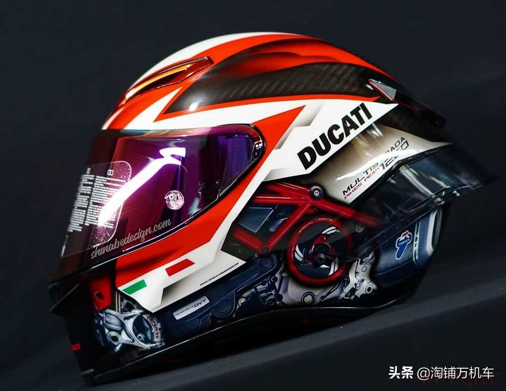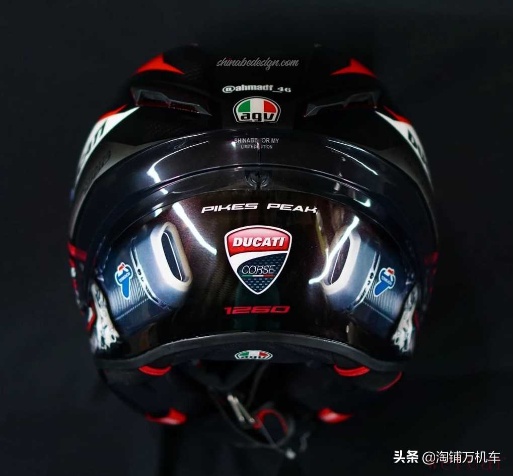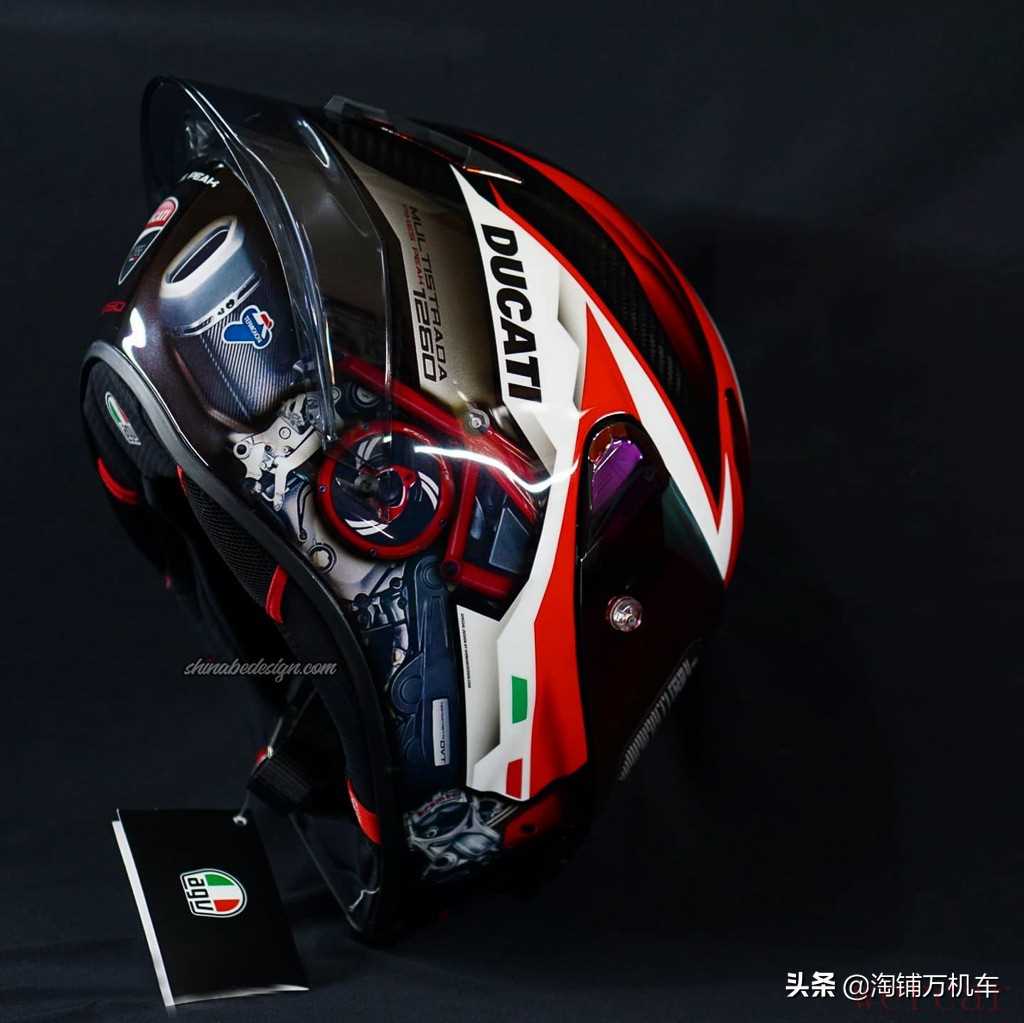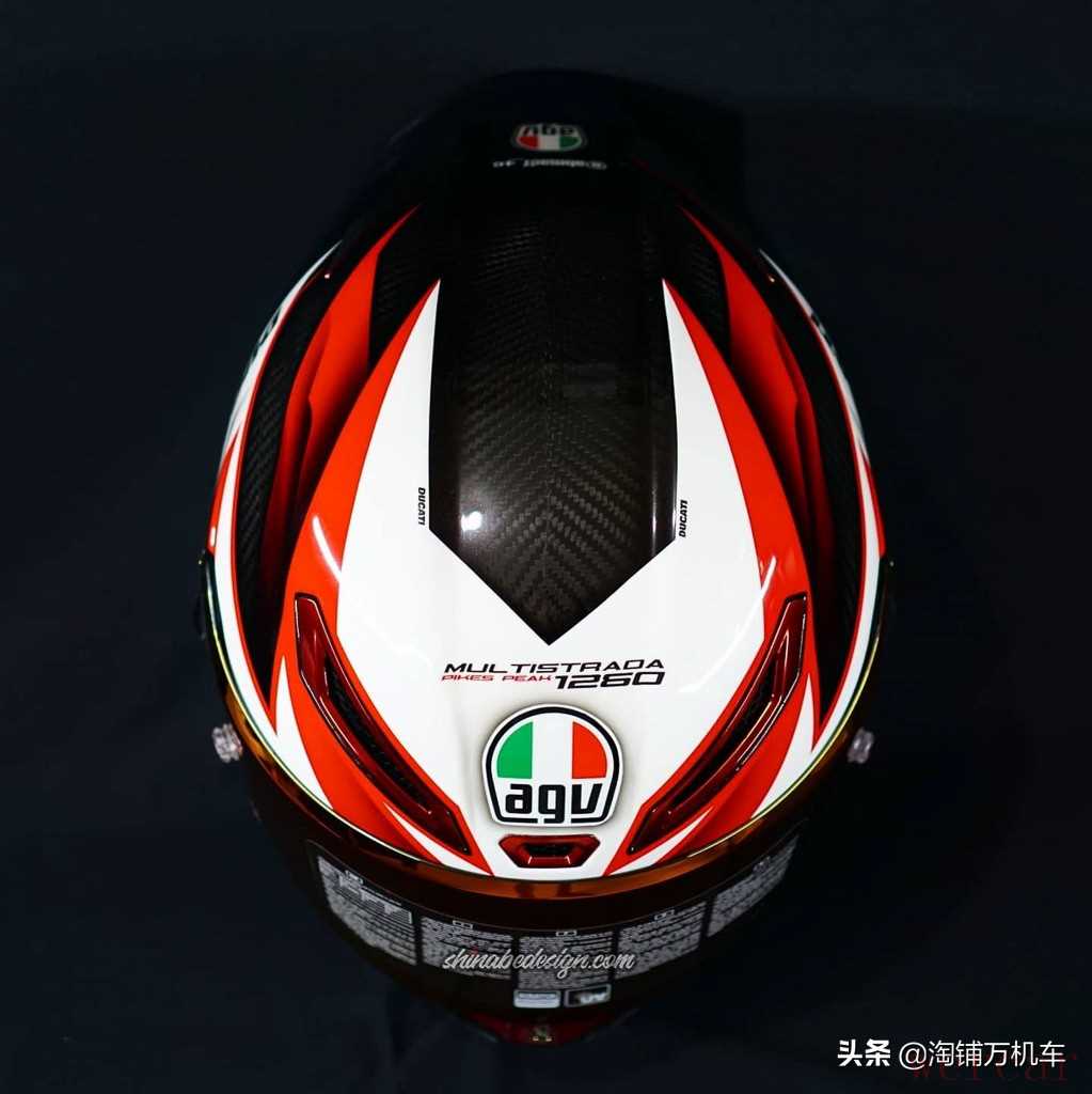 这款Multistrada 1260的手工限量版,是以AGV Pista GP RR ECE(价格1600欧元)为基础制作,在全碳纤维的壳体上,采用精湛的手工艺绘制而成,将杜卡迪Multistrada 1260的特色部位融入其中,特别是在头盔后部,充分的结合PRO扰流板的造型,打造出近乎裸眼3D的视觉冲击。