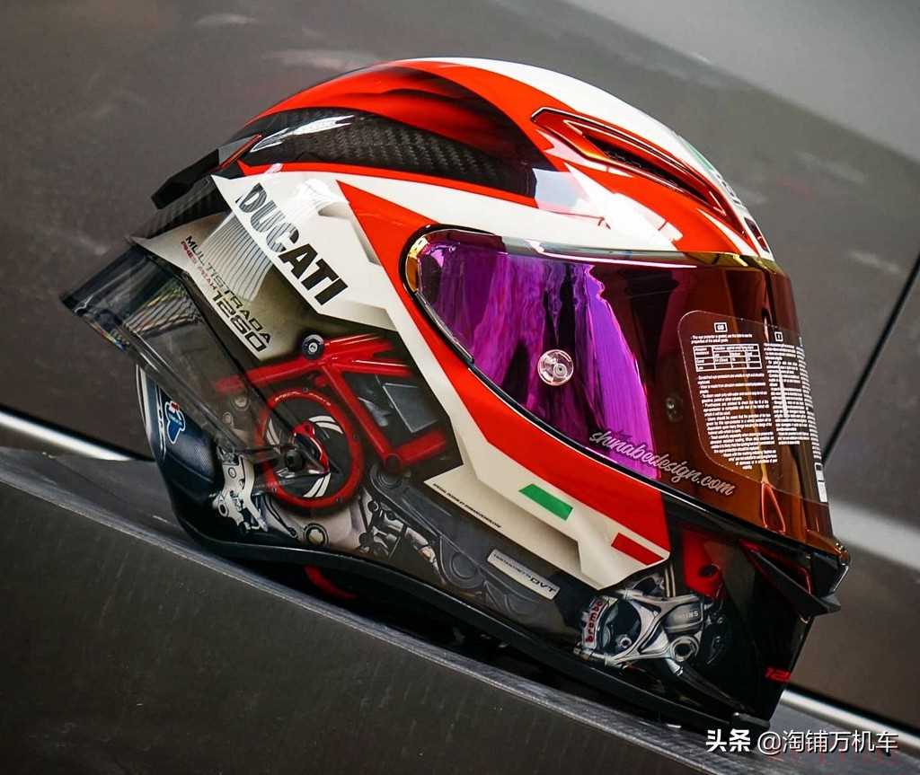 AGV Pista GP RR是AGV头盔最先进的头盔型号,已由泰国工作室重新手工绘制了新的图案,AGV Pista GP RR新的外观被印上了杜卡迪Multistrada 1260,出色的工艺使价格增加了许多倍,AGV Pista GP RR Multistrada 1260的手工限量版仅有5件。
