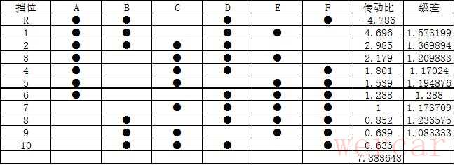 福特与通用联合开发的10AT传动简图