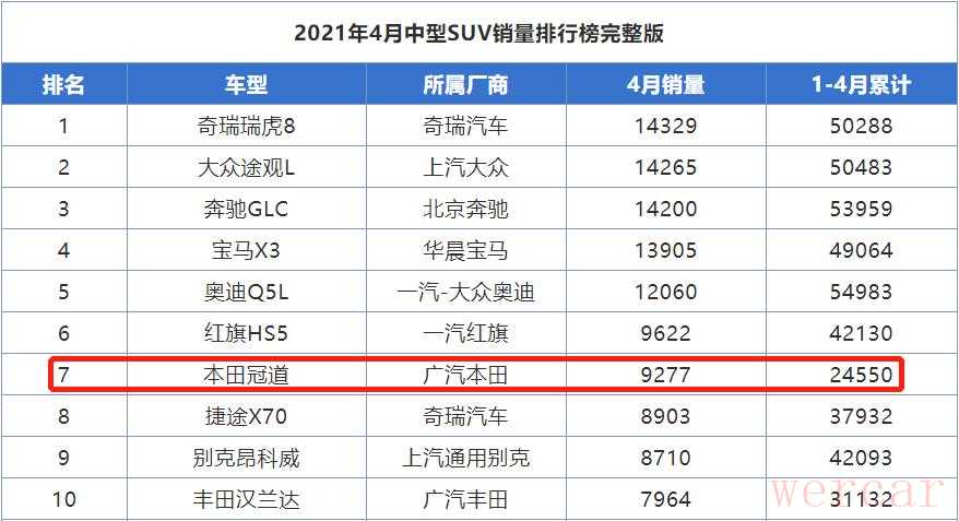 本田冠道销量新高峰,4月销量超越汉兰达,宽敞空间与卓越隔音成就成功