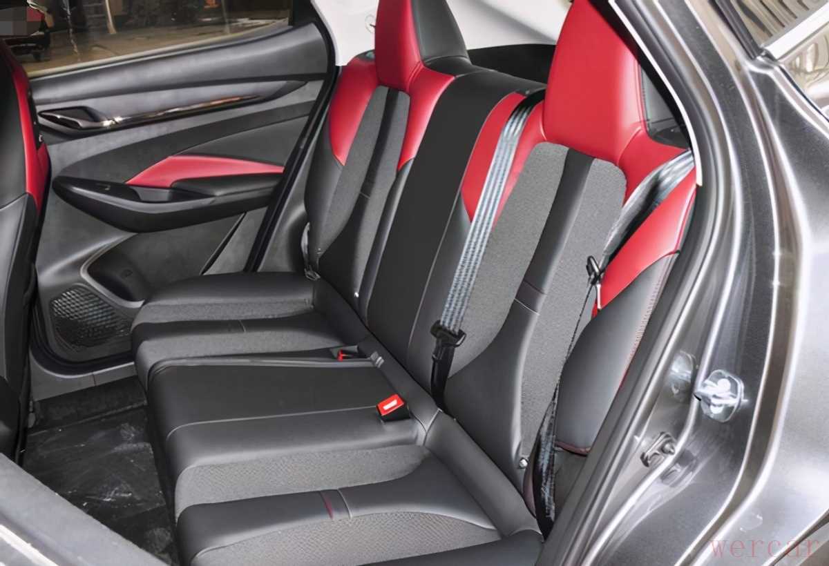 而空间方面,这款车的长宽高分别为4490/1860/1580mm,轴距为2710mm。在同级车型中,它的车身宽度和轴距方面还是非常有优势的。像我178cm的身高,坐到前排并将座椅调至最低后,头部空间还有1拳的距离。再坐到第二排座椅,头部空间有4指的距离,腿部空间有2拳的距离。整体的乘坐空间表现还是比较充裕的。不过这款车的后排座椅中间位置没有配备头枕和后排中央扶手,有些遗憾。