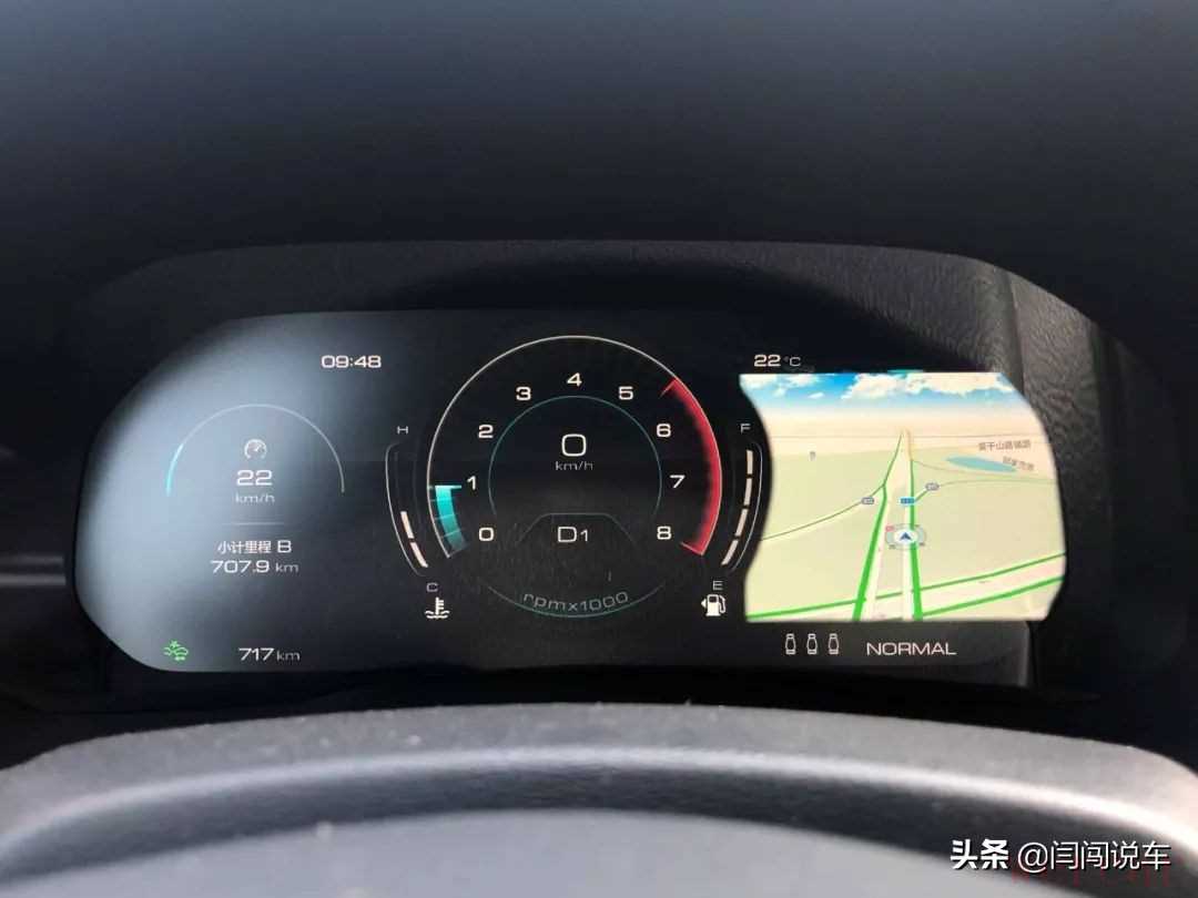 全液晶仪表盘的界面也经过了重新设计,显示信息丰富,并有三种主题可选。当然最重要的是,在导航过程中,高德地图完全投射到仪表盘上,这点很赞。