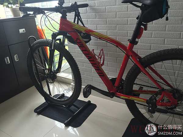 加了个脚撑(听说好点的车不建议装这样的脚撑,车架会变形),所以我还买了个支撑架。 这样就万无一失了,家里的孩子是拉不倒自行车的了。