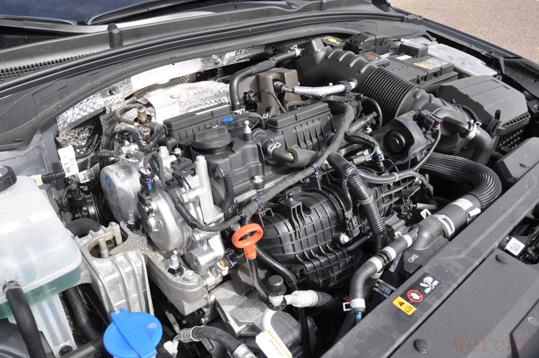 由于机型较老,发动机的技术配置并不先进:86mm*86mm 1:1缸径-冲程比、铸铝缸体缸盖、塑料气缸盖罩、进气侧凸轮轴侧E-CVVT电动正时调节、双涡管电控旁通阀涡轮增压器、缸内直喷系统、进气管湍流隔板、电控水泵以及油泵。考虑到增压器的压力更大,i30N 9.5:1的压缩比比国产机型的10.0:1稍低一些, 275马力/378牛米也是这一机型的最大动力,包括后续更为极限的小批量i30N Project-C都没有追求更高的功率输出。