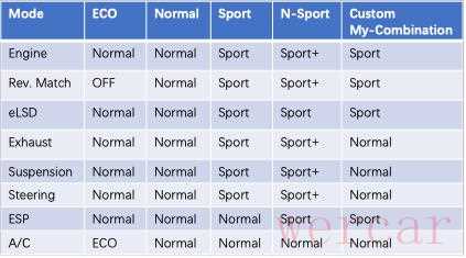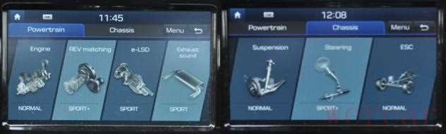 除了上面提到的发动机、Rev Match、e-LSD以及运动排气外,ESP、转向器、减震器也提供不同模式调节,这些可以调整的特性最终归结到五种不同的车辆模式中: ECO、Normal 、Sport以及N、Custom。不同的车辆模式通过方向盘上两个巨大的模式按键进行循环调整,左侧按键循环负责前三个模式,右侧的方格旗按键则负责后两个。传说中的N模式其实就是各个系统均处于Sport+模式的集合,与其他三个模式的差异明显,具有存在意义。