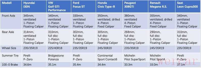 i30N采用前后铸铁通风制动盘,后制动盘与Genesis G70通用,前制动盘比后者(330毫米)还大一些,但没有用G70的布雷博产品,而是由关联供应商现代摩比斯Hyundai-Mobis提供。前后轴均为单活塞浮钳制动器,配以高性能制动衬片,前轴轮拱上有额外的通风管道为制动系统冷却。