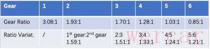i30N的变速器来自关联供应商现代坦迪斯Hyundai-Transys,猜测基础机型是普通的M6F28系列变速器,更换了离合器以及齿轮组,一二挡的同步器在从动轴上,三组同步环;三至六挡在主动轴上,单组同步环,内侧带有碳纤维夹层。速比设定比较紧凑,各挡之间的速比比值非常均衡,是一台明显运动取向的变速器,但高挡速比依然很高,导致油耗不太令人满意。