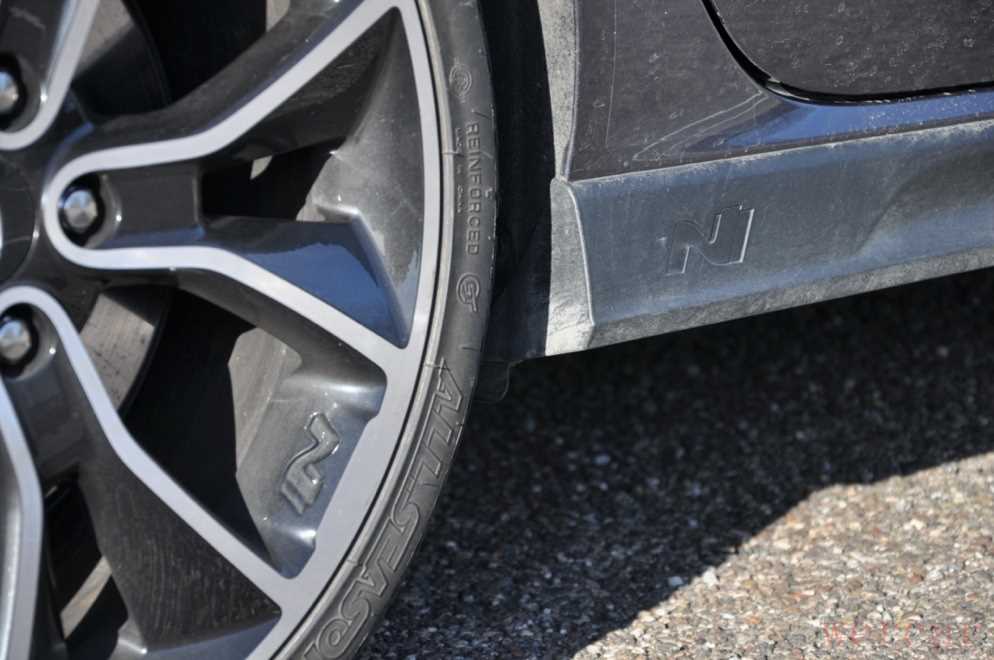i30N的前轴基本没有结构和材质变化,只是将普通车型采用的前轴铸铁转向节更换为铸铝结构,并针对i30N进行了结构上的调整,以“更好地控制载荷对于车轮约束的影响”。不过由于结构并没有发生较大变化,“更好地控制载荷对于车轮约束的影响”非常不明显。操控性上没有类似本田Civic Type-R那种强大的前轴抓地力,没有出人意料的体验。