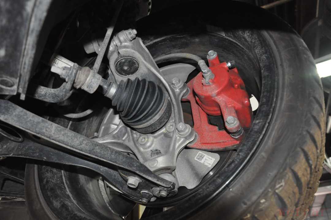 后轴则继续采用四连杆独立悬架+铸铁车轮架的配置,与普通车型通用零件。