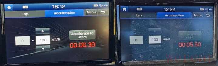 ▲使用弹射起步程序(左)与不使用程序加速时间(右)