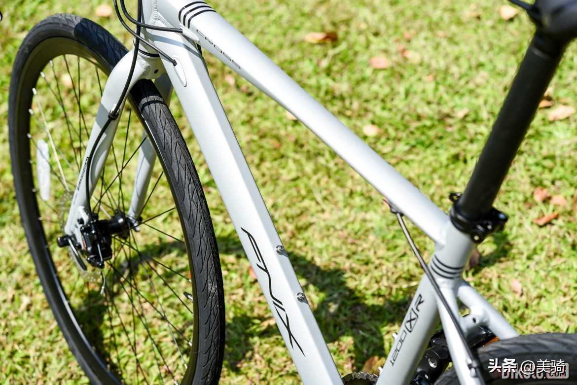 FNIX XR1200的管形比较粗壮,用料扎实,非常稳重。整车12千克的重量不算轻,但对于一台全铝合金的入门级公路车来说足够让人满意。