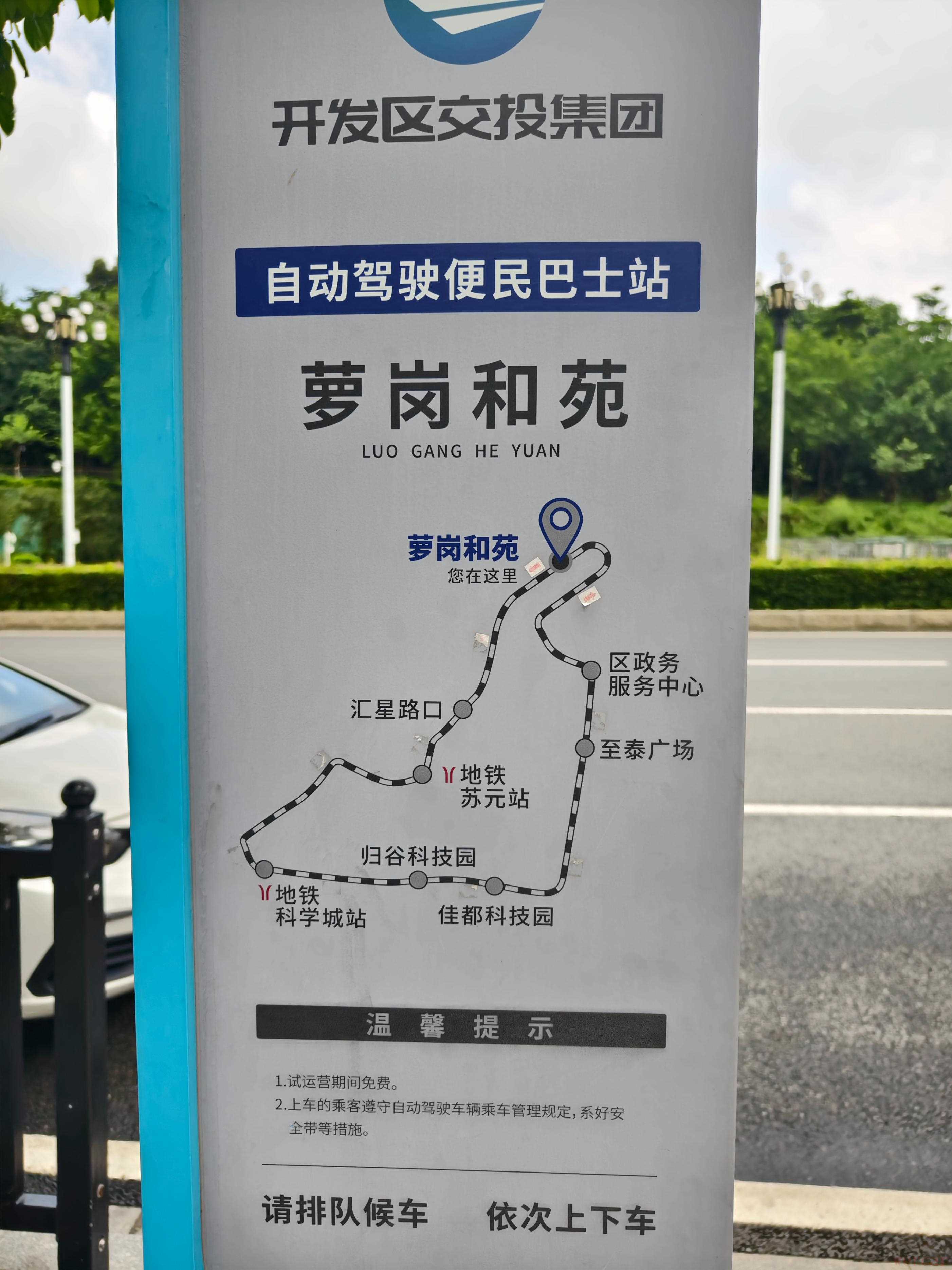 图源:雷科技摄制小雷从地铁科学城站坐到了萝岗和苑,全程4.5公里24分钟到达。尽管通行效率不高,但个人认为乘坐体验要比无人驾驶出租车好上许多,座位舒适度是一方面,更重要的是可以慢慢欣赏路边景色。该路线试运营期间是免费的,如果未来能面向更多区域开放,即使收费,小雷认为也值得一试。
