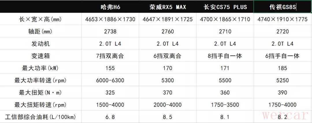 相反,哈弗H6 2.0T发动机的动力表现则只能算是同排量的中等水平,最大功率仅为155kW,最大扭矩不过是325Nm。市场里随手一抓都能抓到比它强的2.0T发动机,例如荣威RX5 MAX的动力是170kW/370Nm;传祺GS8S的动力就更是强劲,最大功率185kW,最大扭矩390Nm。