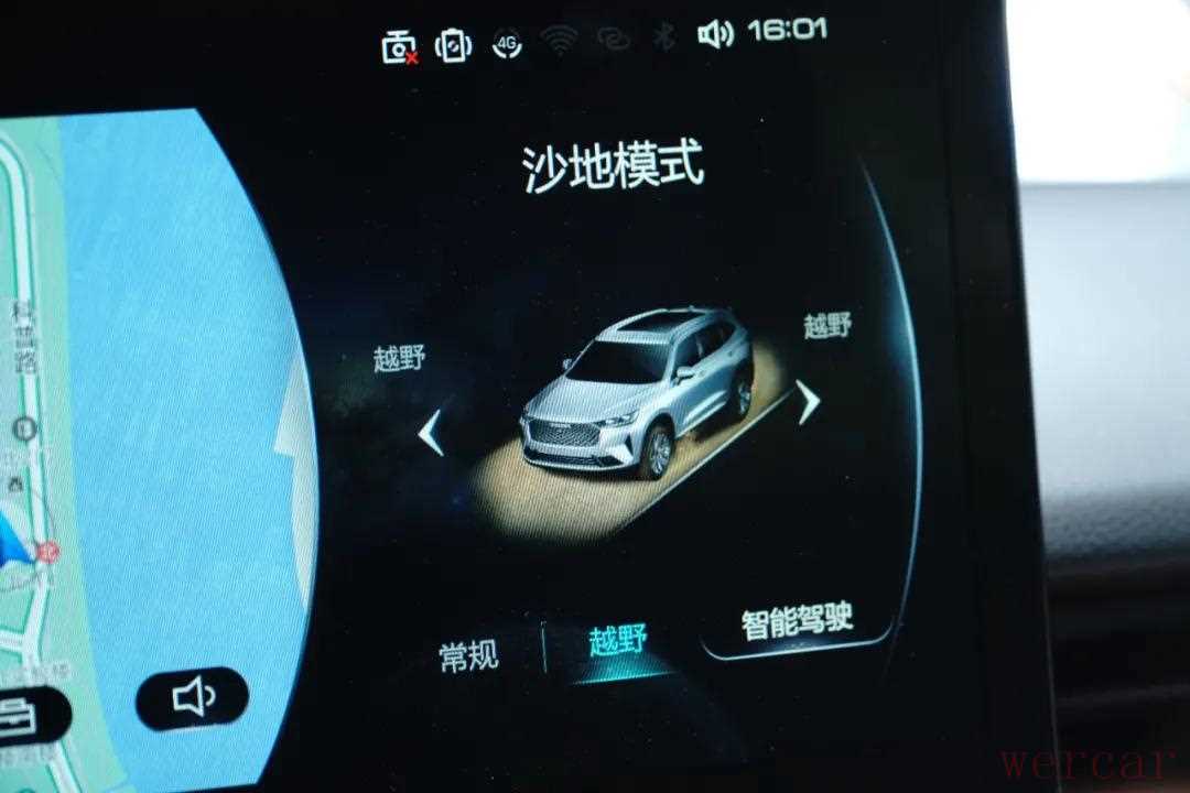 ▲在中控屏上直接选上“越野”,四驱系统就会工作,遗憾的是,哈弗H6的越野模式非常有限,除了“越野”,就是“沙地”。它之所以如此豪横,是因为它有全地形控制系统,不需要驾驶者过多操心驾驶模式。