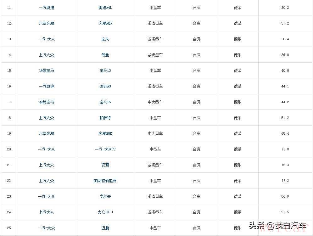 3. "帕萨特 (VW Passat)":帕萨特的排名波动可能相对较大。在某些报告中可能表现中上,但在其他报告中也可能因为某些问题(如过去的双离合变速箱问题、后期改款的结构变化等)而排名有所下滑。您提到的
