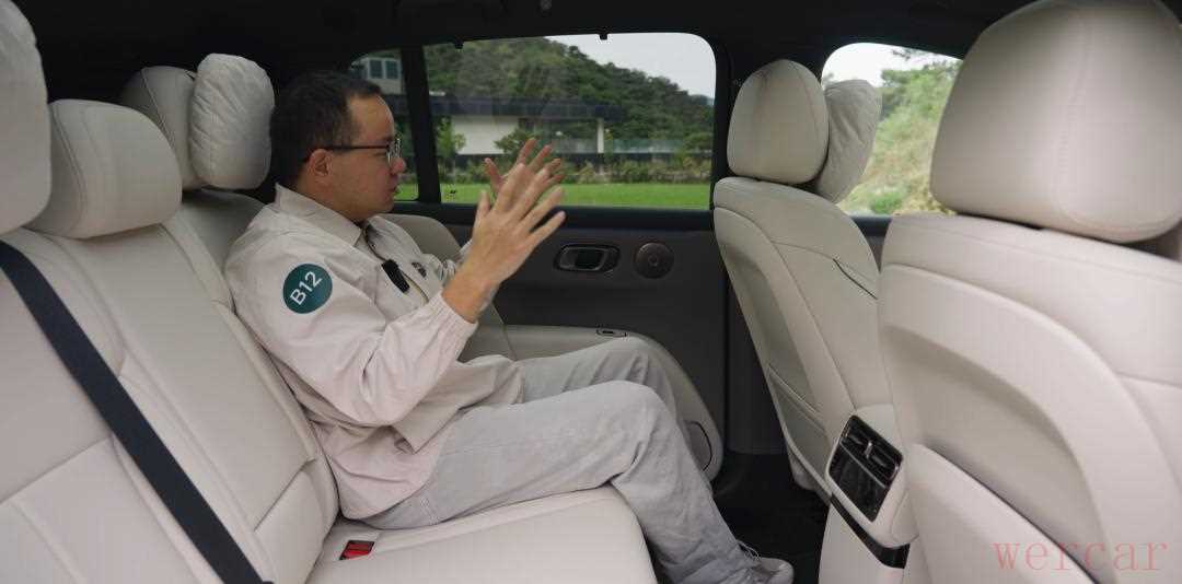 纯电平台去掉了内燃机,所以整个乘员舱的空间可以释放的更多,i6 的轴距有 3 米,这给了后排很大的发挥空间,不管是头顶还是腿部空间都相当优秀。