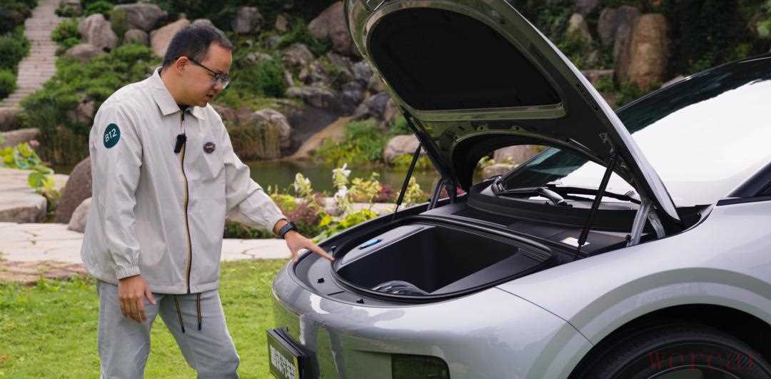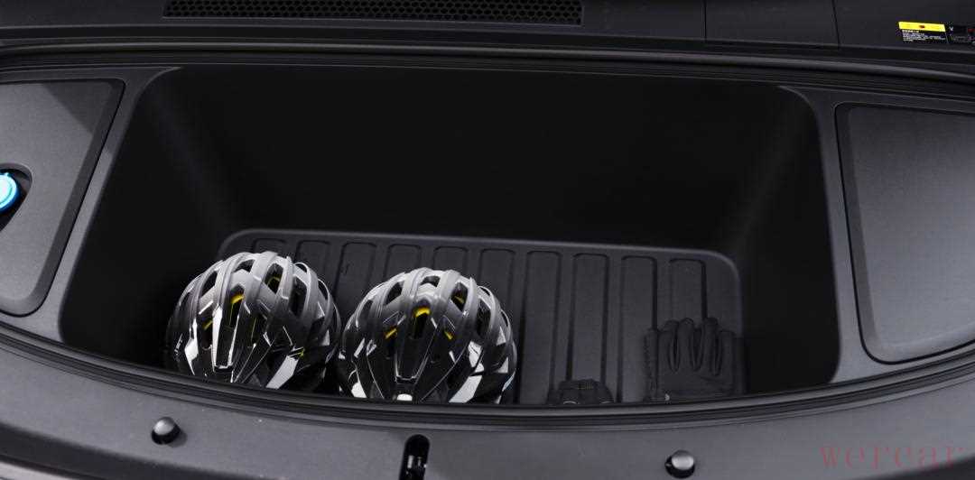轻叩两下车标的区域,前机盖就会弹开,这个车外便捷开启的方式,就决定了这是一个日常可用的前备箱。前备箱放在车内电控开启的,有一个算一个,根本就没人会用,操作链路太繁琐了。理想没有公布具体的前备箱容量,但往里扔一个 20 寸行李箱还是绰绰有余的,而且它的深度不算深,再加上距离前保险杠的位置很近,整体取拿东西会很方便。