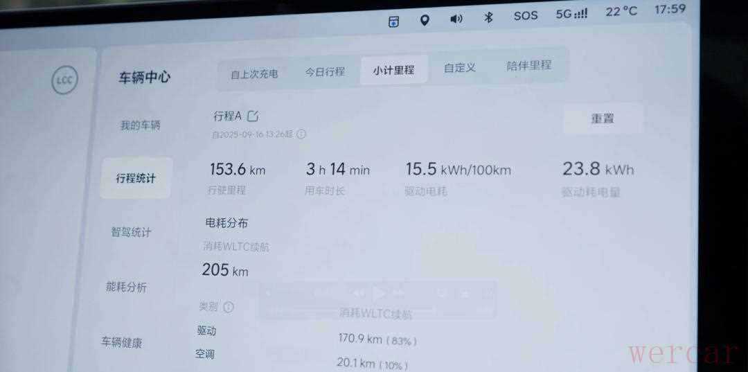 脖子哥试驾当天气温 20 度,在暴力驾驶的情况下,后驱带空悬版的驱动电耗 15.5kWh/100km,综合电耗大概 18kWh/100km 左右,这么算下来续航里程大概在接近 500km 左右,这个数字仅供参考,日常城区里用的话应该会更低一点。