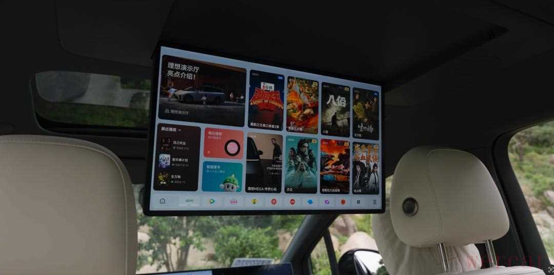 冰箱彩电大沙发一直是理想的灵魂,i6肯定也是都拉满的,只不过彩电需要选装。这块 21.4 英寸的 LCD 屏幕是 MEGA 同款,观感和色彩都是很优秀的水平。