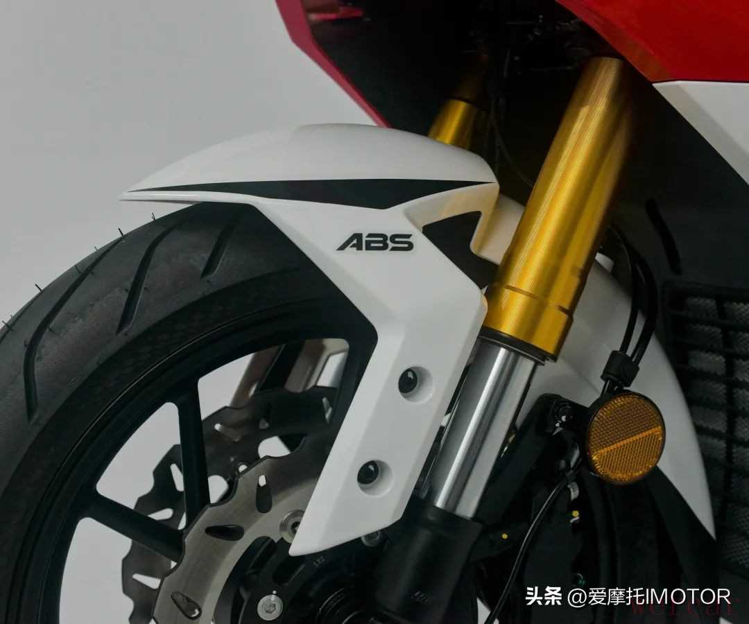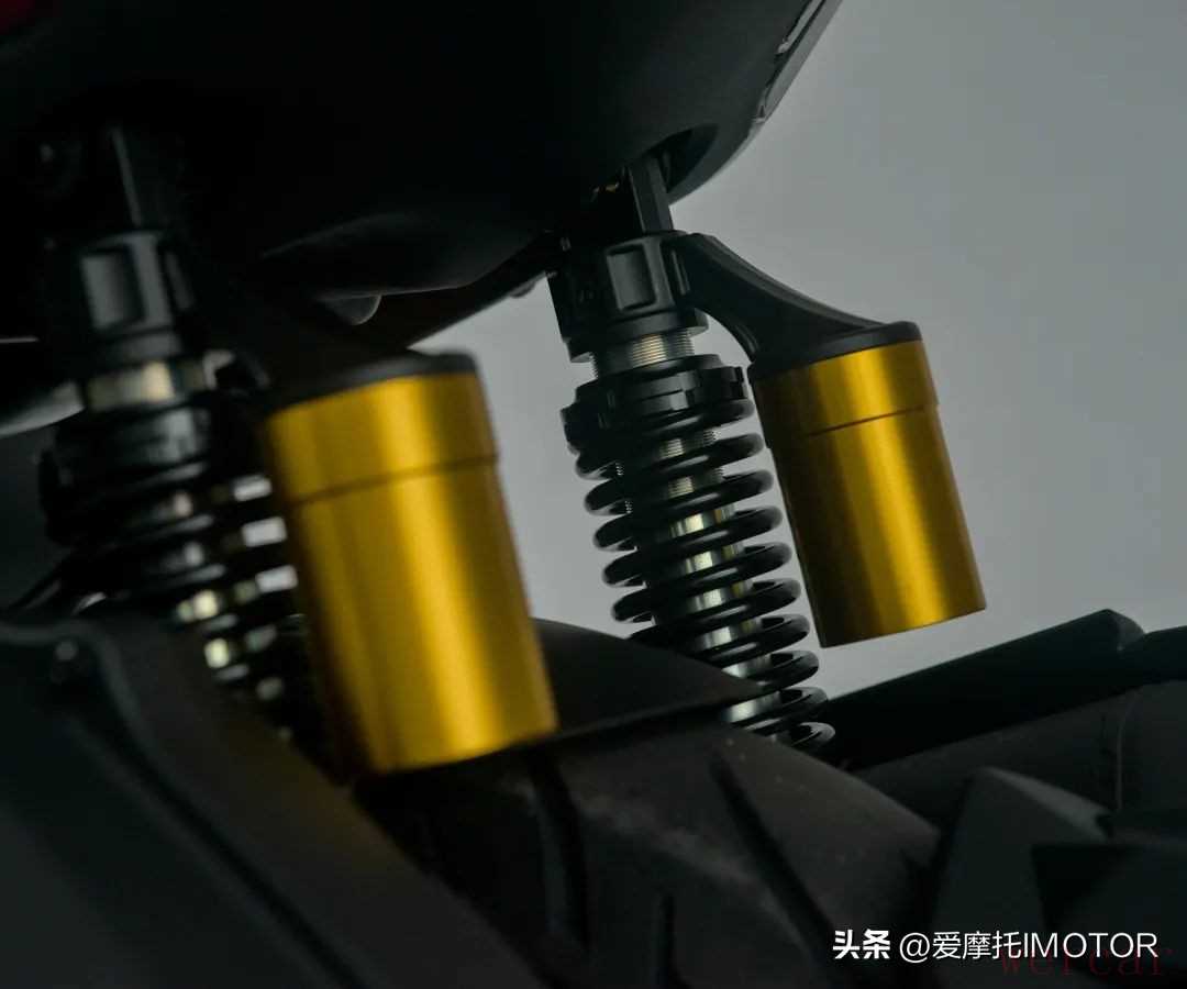 车身配置方面,前部采用倒置 (USD) 金叉,后轮采用双后带气瓶减震,提供预载可调,搭配前15后14寸轮毂,制动方面为前后碟刹,前轮为双 260 毫米碟盘配对向双活塞卡钳,后轮为单 240 毫米底盘配单活塞卡钳。还配有双通道 ABS 和TCS。