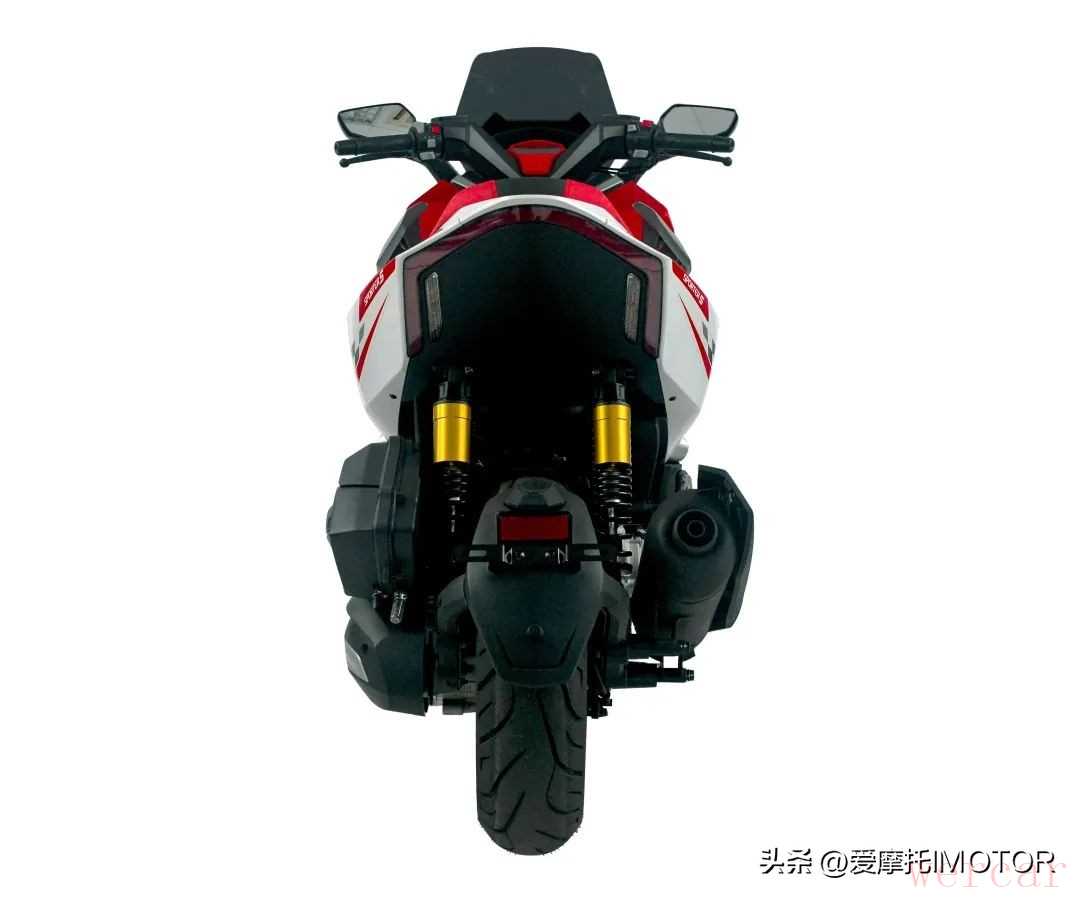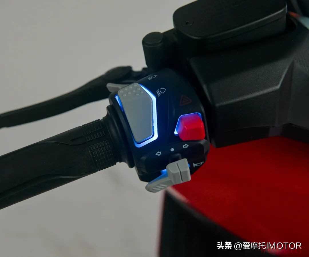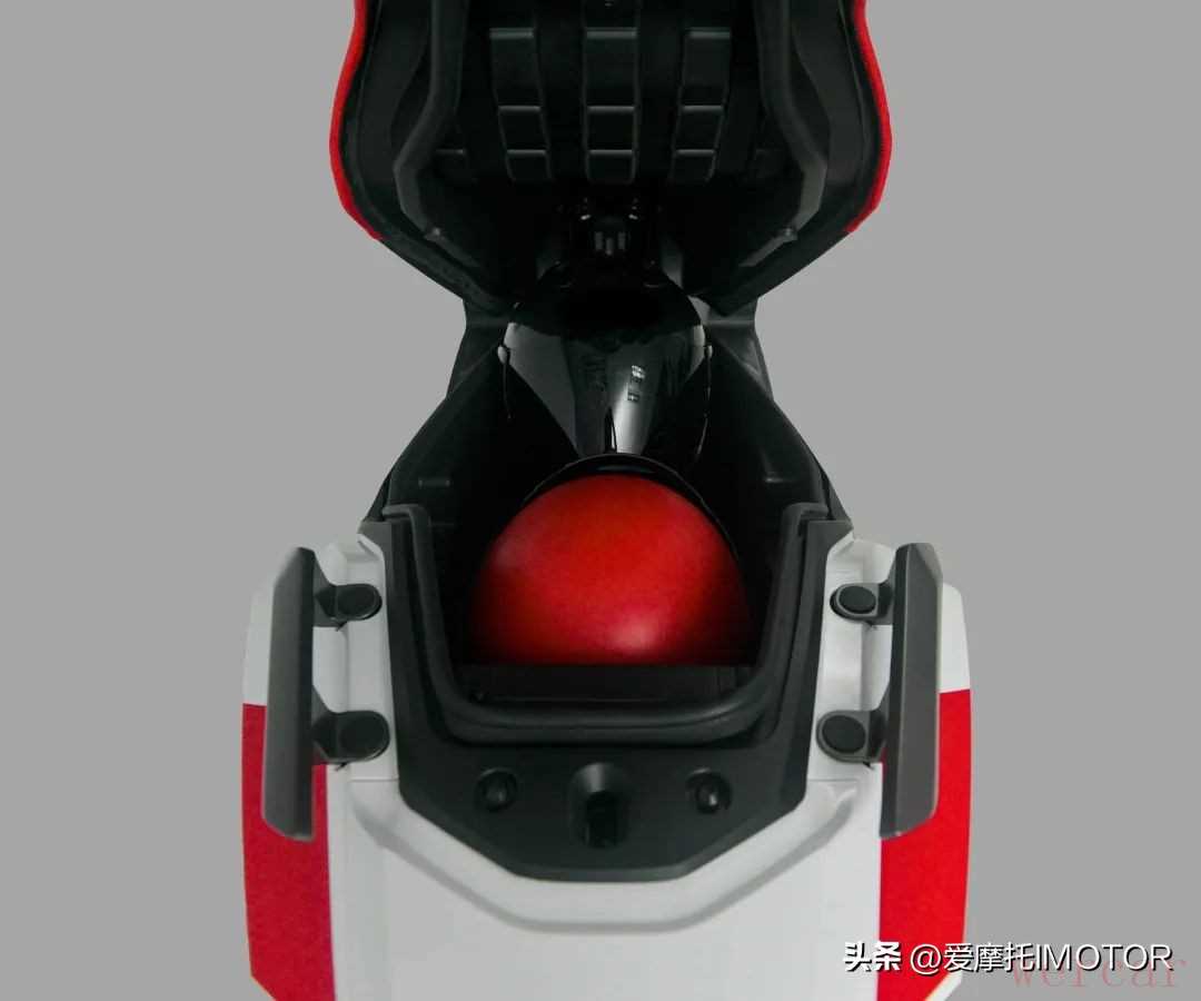 车身配置方面,一块6.3英寸的TFT+LCD仪表,能通过蓝牙连接手机,带USB充电口,此外还有无钥匙启动、自带胎压监测、远程启动和座椅打开,车把开关自带背光系统,就是风挡需要手动调整,座桶下方也有10升的储物空间,作为运动踏板来说也是将将够用。