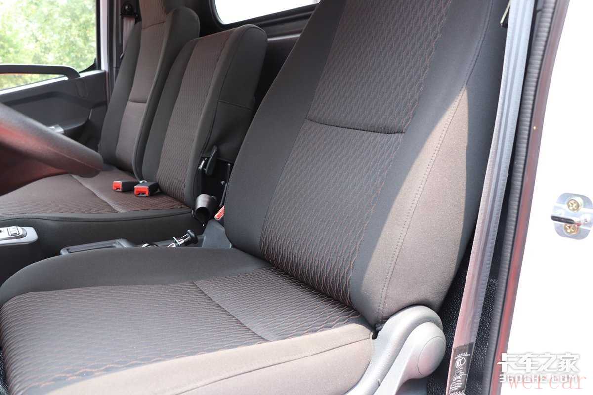 在座椅设计上,与大部分轻卡车型类似,为机械座椅,具备腰部调节功能。不过该座椅的填充物很饱满,其纺织工艺也比较细腻,整体具备良好的舒适性能。