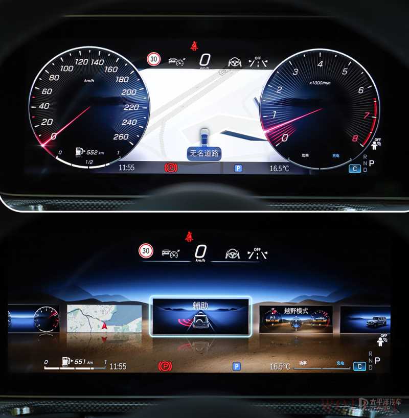最大的亮点还是升级了MBUX系统,相比老款COMAND系统,新款的仪表盘有着更现代化的主题,多种主题可以切换显示越野、辅助、地图、数据等内容,最大程度地利用这块细腻的屏幕,驾驶员也能目不转睛读取到更多信息。