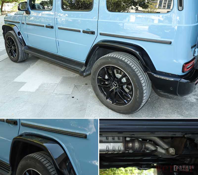 两边外扩的轮眉与侧面踏板相连接,这也是G级越野车身份的象征,而新款G500保留了隐藏式的侧置双出排气,冬天温差较大,侧面缓缓冒出白烟还是很有意思的。