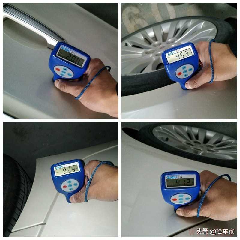 随后拿出专业设备检测漆面具体情况,一圈漆面检测发现外观覆盖件的漆面除了大顶其余均存在喷漆,有4个面存在钣金,好在是程度还不是很严重,咱接着往下看。