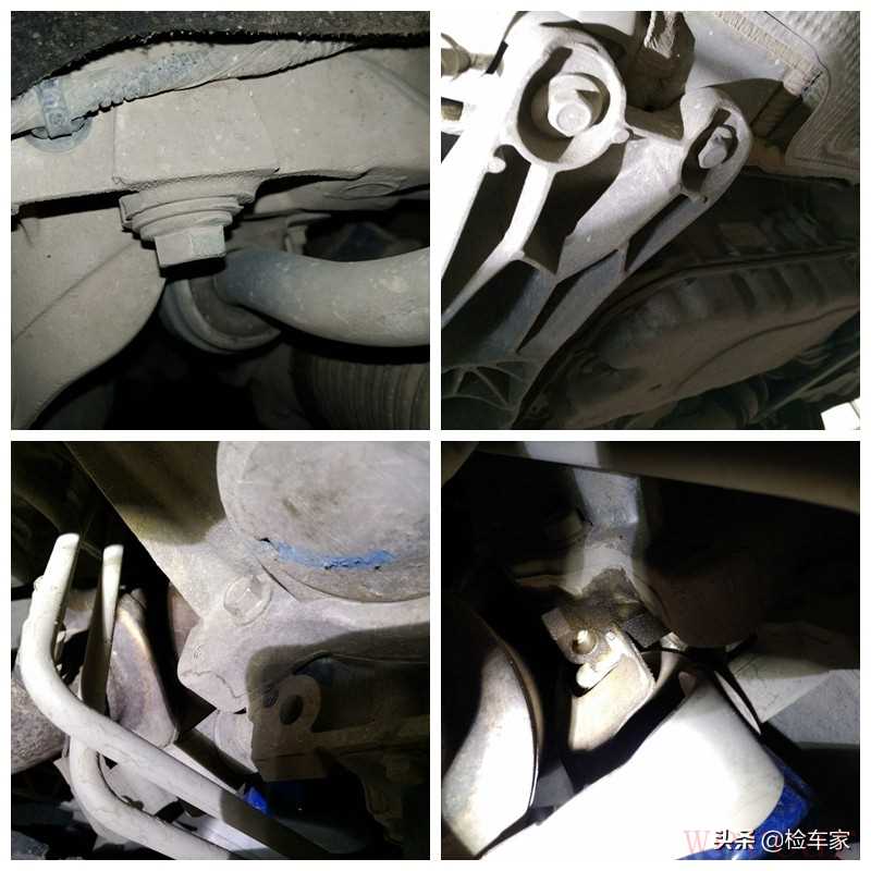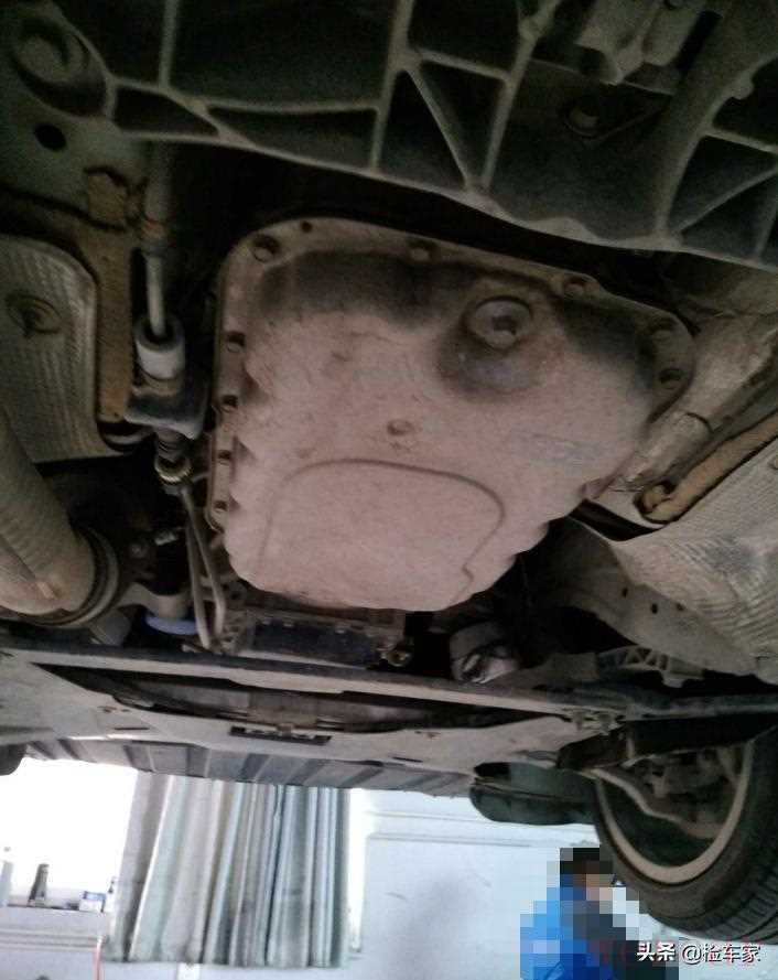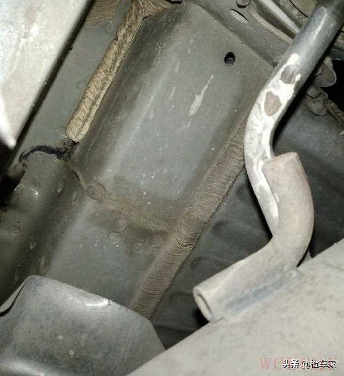 接着检查到元宝梁螺丝无拆卸;变速箱机脚螺丝无拆卸;可以排除发动机吊装维修。不过发动机变速箱结合处有渗油痕迹,但是不严重,后期可以稍加注意观察一下,问题也不大。
