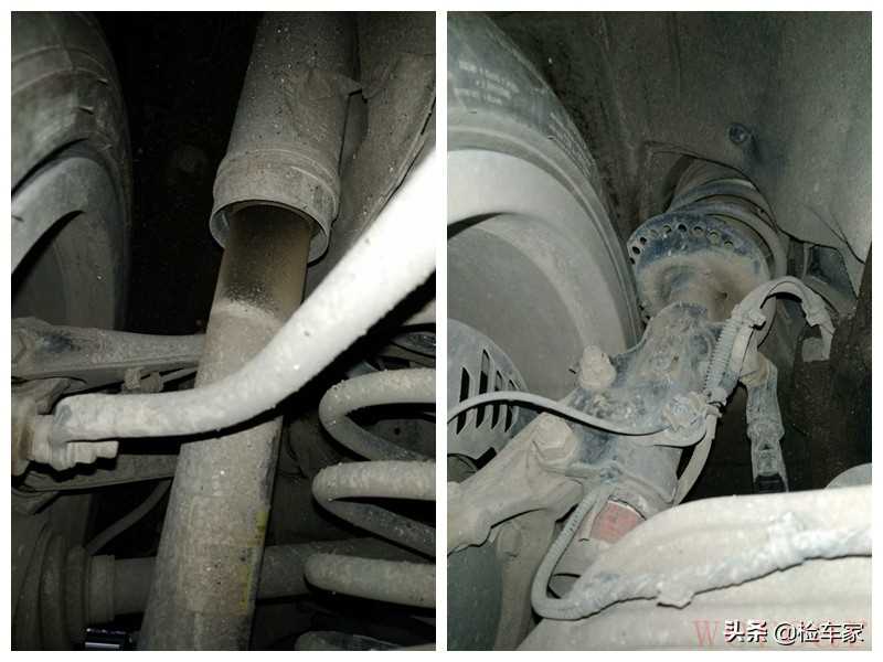然后检查了各个悬挂,发现左侧减震有些轻微漏油,右侧减震没有问题。表现还不错,这种程度后期都不用处理,只用稍加留意就行了。