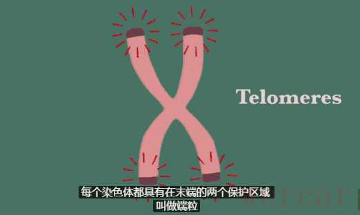 科学家认为染色体末端的一小段叫作端粒的结构影响着人类的极限寿命,因为细胞每次分裂后,端粒都会随之缩短,当分裂达到一定的次数时,端粒的长度就不足以支撑下次分裂了,人类也会随之死亡。