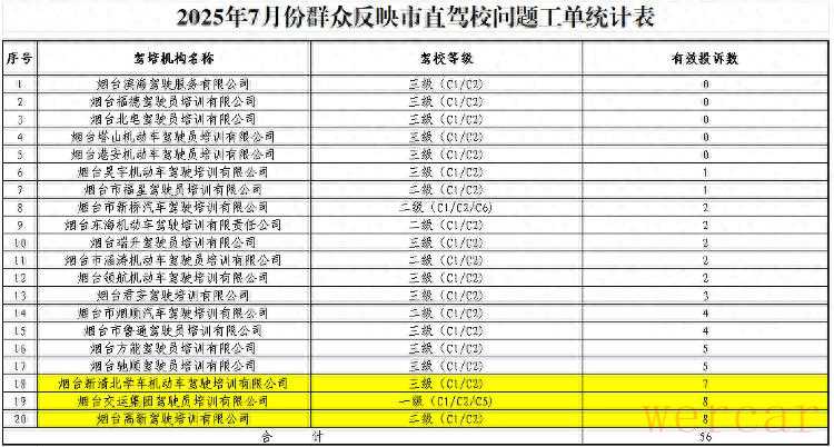 烟台7月驾校投诉榜揭晓,20所驾校上榜,5驾校零投诉领跑行业