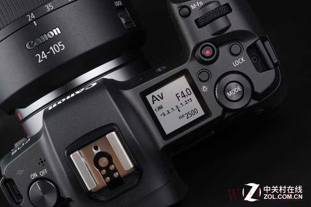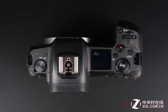 佳能EOS R变动最大的部分在于机身顶部,机身顶部的各类按键都是全新设计的。首先从左往右看,左侧开关不是拨杆式开关,而是转盘式,不过这样可以防止误触。机身没有模式拨盘,而是采用了Mode按键。机身采用了一块方形肩屏设计,这样的设计在如今非常流行。值得注意一点,肩屏在关机状态下也可以显示拍摄模式,这一点非常有用。机身两个拨轮都在顶部,这一点和很多佳能机型类似 。