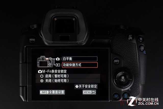 在实际使用中,这个多功能条中最实用的设置就是感光度、白平衡等设置。实际上这个条的操控还是比较容易的,左右滑动和轻触都能快速响应,但是很遗憾现在仅有数据反馈,没有实际的物理反馈,大家需要看参数才知道参数是否成功调整。另外一点,笔者认为这个滑块太接近于拇指部位,在激烈拍摄时,误触的概率其实比较大。所以需要对安全锁定进行设置。