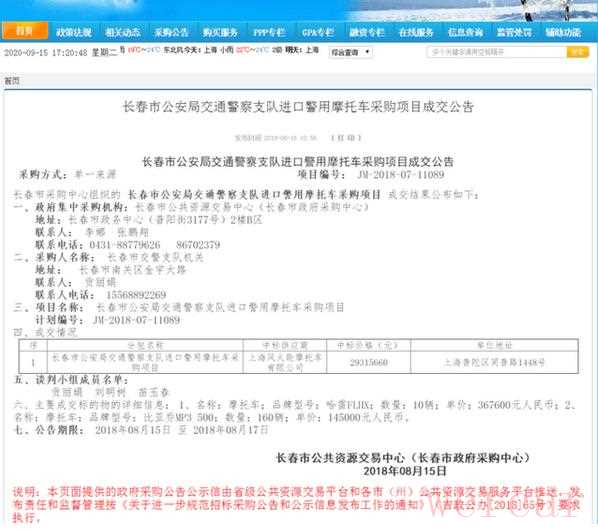 9月15日,一则吉林省长春市公安局交警支队购买多辆哈雷摩托的公告截图,引发了网友热议。截图显示:长春交警支队以36.76万元人民币的单价,购买了10辆哈雷FLHX型进口摩托,作为当地的警用摩托车。当天下午,针对此事,长春市公安局交警支队宣传处一位负责人回应称:被热议的采购项目成交公告是2018年的事,这批哈雷警用摩托车均是经过正规手续和流程购买,这两年也一直在用。不过,对于这批哈雷警用摩托车是否有特殊用途的问题,该负责人并不清楚。