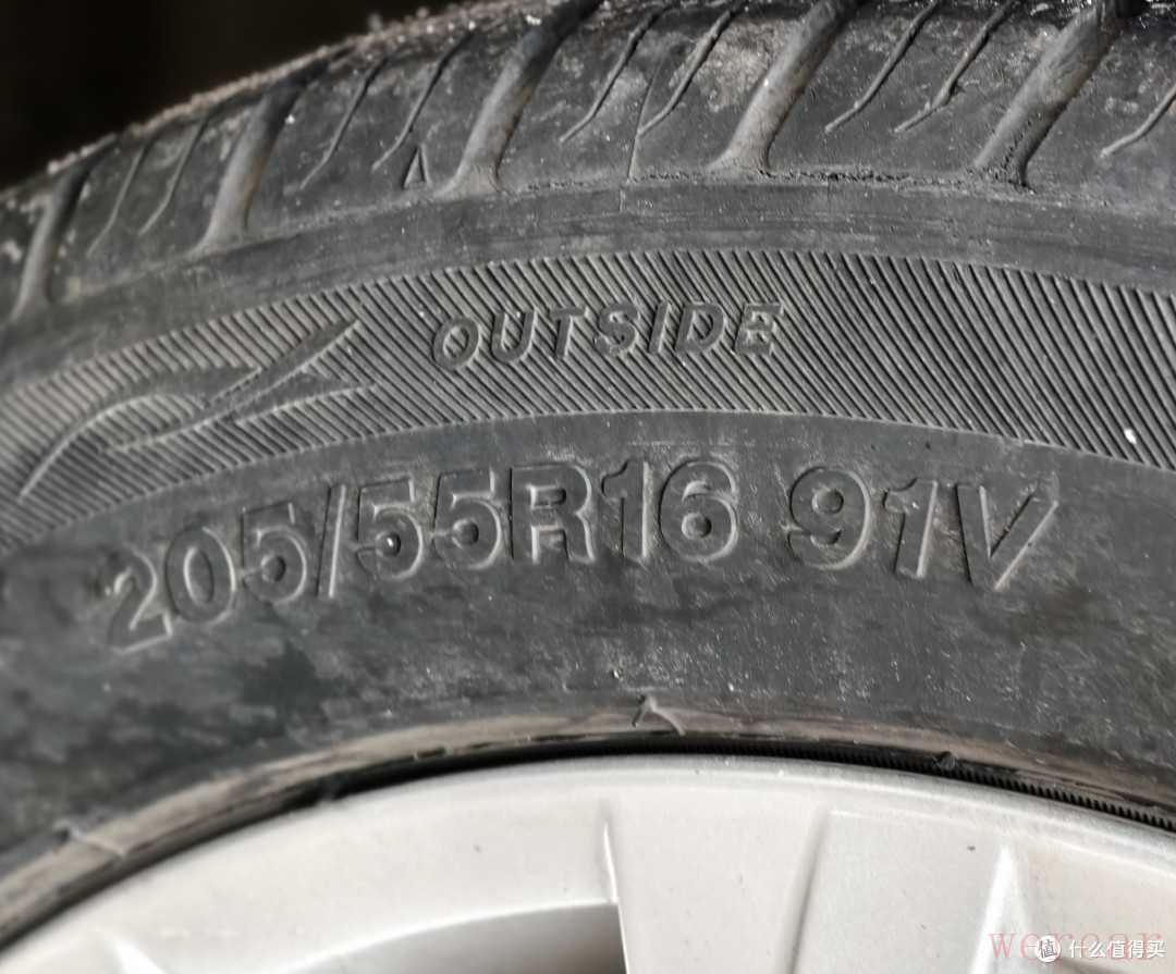 只要稍加注意你就可以在轮胎的一侧看到这样的数值 :205/55R16 91V