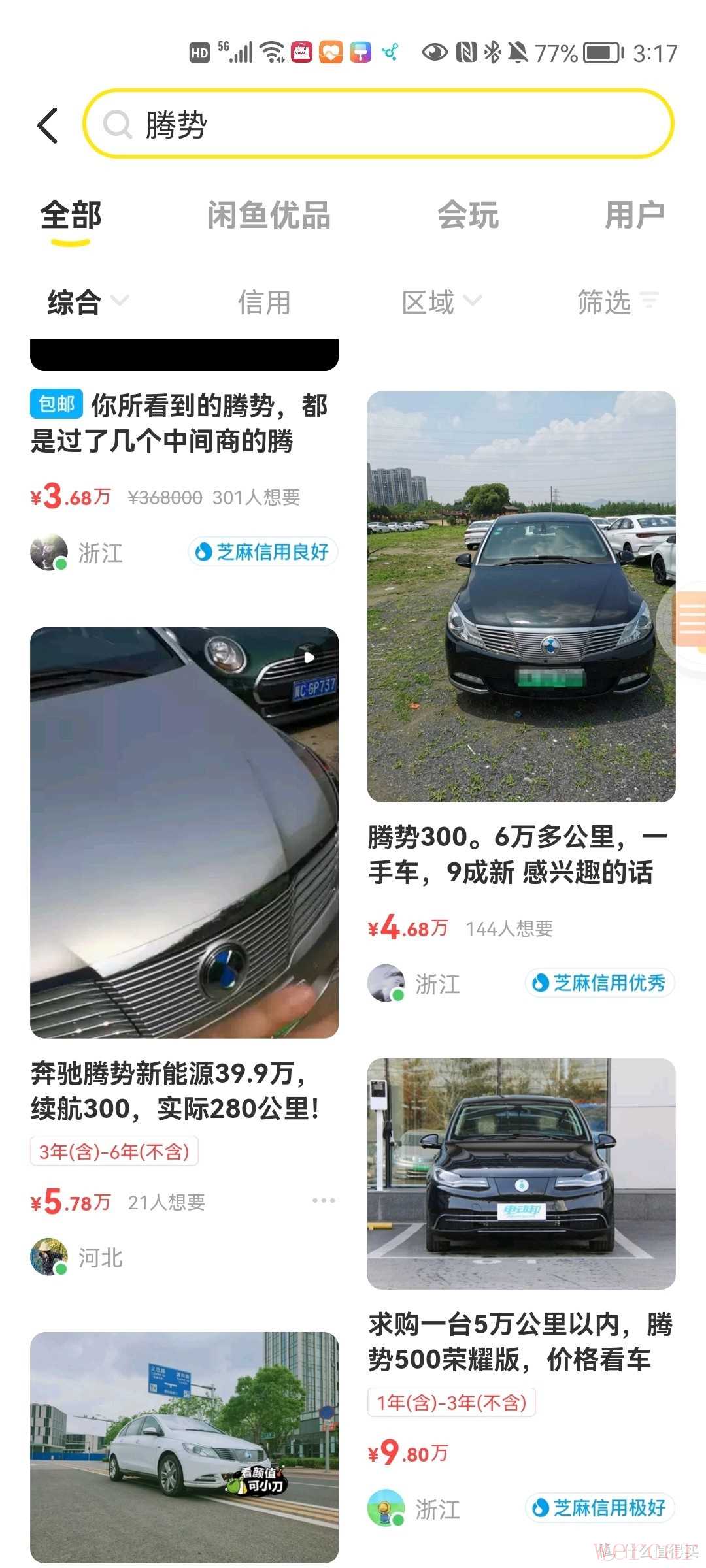 结果呢,一天天的看价中,也加了不少新能源群,看大家吹水顺便学习一下知识。然后某天某个新能源购车群,就突然聊到了一款车,叫腾势,比亚迪与奔驰联合开发,一直的出厂价是30w起,高配能上40w,然而现在二手车只要3w出头,比较新的里程少的5-7w也可以拿下。